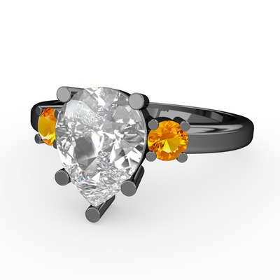 Swarovski ve sitrin 925 ayar siyah rodyum kaplama gümüş yüzük