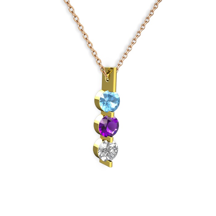 Akuamarin, ametist ve swarovski 8 ayar altın kolye (40 cm gümüş rolo zincir)