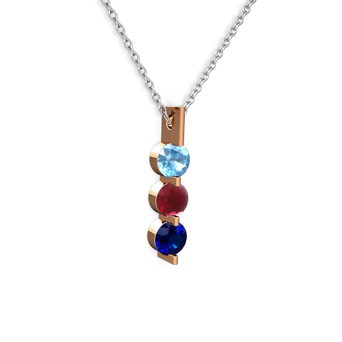 Akuamarin, kök yakut ve lab safir 925 ayar rose altın kaplama gümüş kolye (40 cm beyaz altın rolo zincir)