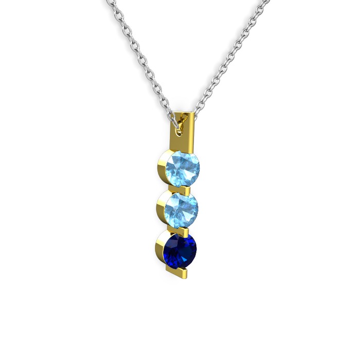 Akuamarin ve lab safir 8 ayar altın kolye (40 cm beyaz altın rolo zincir)