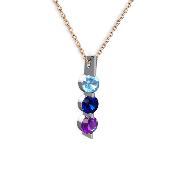 Akuamarin, lab safir ve ametist 925 ayar gümüş kolye (40 cm rose altın rolo zincir)