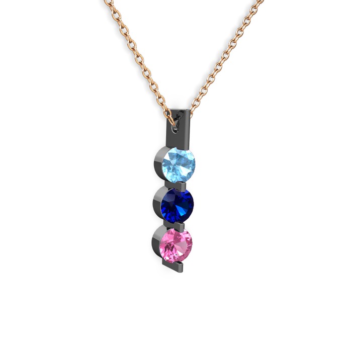 Akuamarin, lab safir ve pembe kuvars 925 ayar siyah rodyum kaplama gümüş kolye (40 cm rose altın rolo zincir)