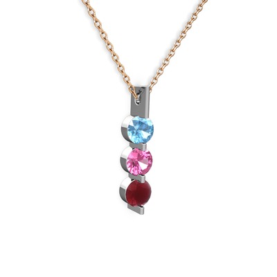 Akuamarin, pembe kuvars ve kök yakut 8 ayar beyaz altın kolye (40 cm gümüş rolo zincir)