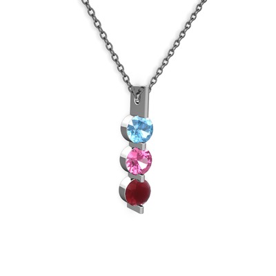 Akuamarin, pembe kuvars ve kök yakut 8 ayar beyaz altın kolye (40 cm gümüş rolo zincir)
