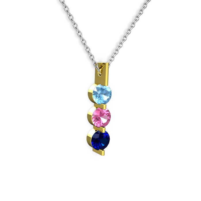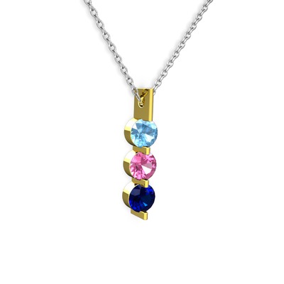 Akuamarin, pembe kuvars ve lab safir 8 ayar altın kolye (40 cm beyaz altın rolo zincir)