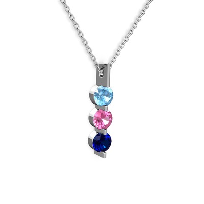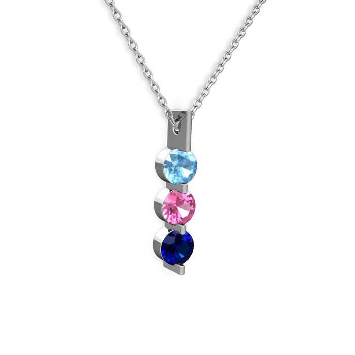 Akuamarin, pembe kuvars ve lab safir 8 ayar beyaz altın kolye (40 cm beyaz altın rolo zincir)