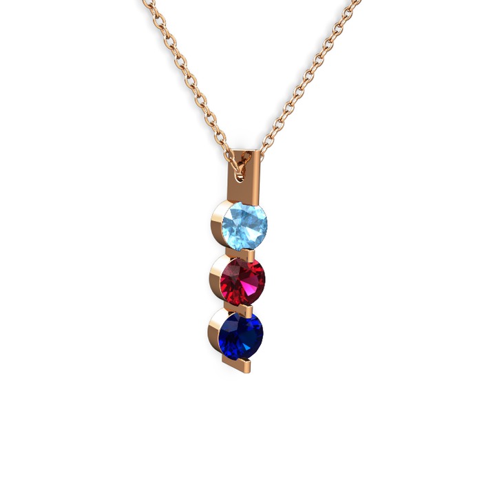 Akuamarin, rodolit garnet ve lab safir 8 ayar rose altın kolye (40 cm gümüş rolo zincir)