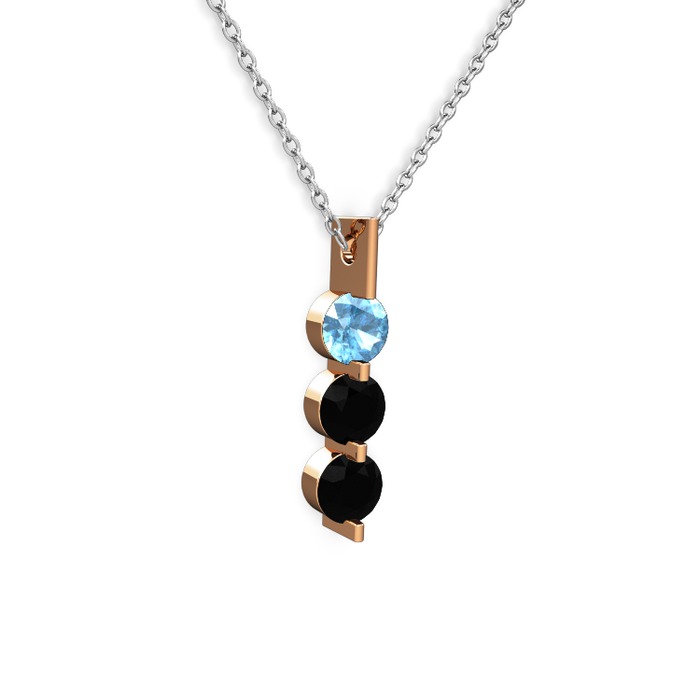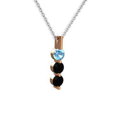 Akuamarin ve siyah zirkon 14 ayar rose altın kolye (40 cm beyaz altın rolo zincir)