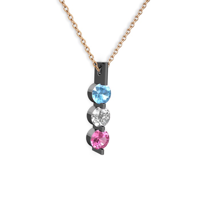 Akuamarin, swarovski ve pembe kuvars 925 ayar siyah rodyum kaplama gümüş kolye (40 cm gümüş rolo zincir)