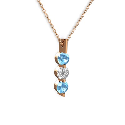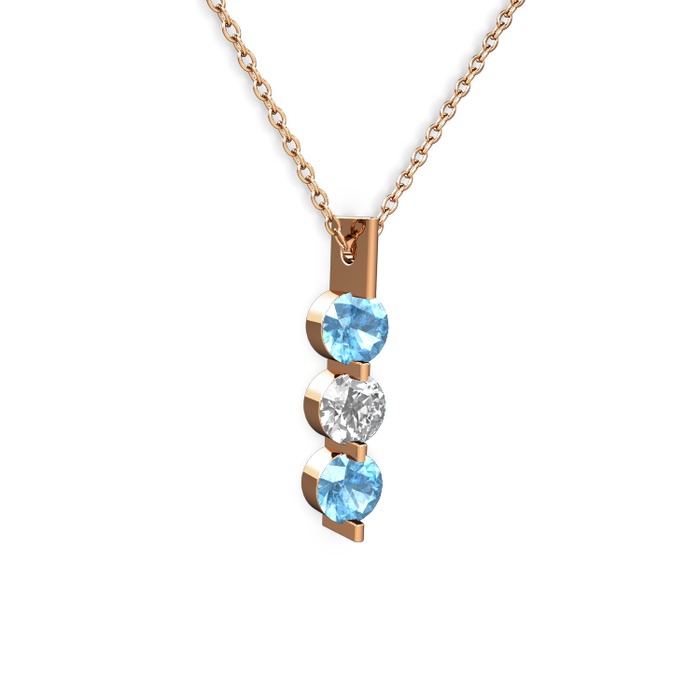 Akuamarin ve swarovski 925 ayar rose altın kaplama gümüş kolye (40 cm gümüş rolo zincir)