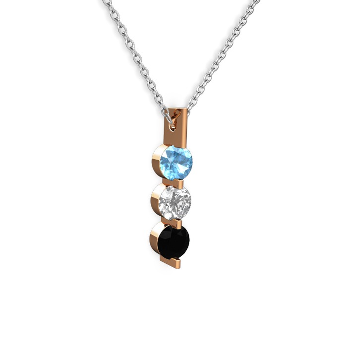 Akuamarin, swarovski ve siyah zirkon 14 ayar rose altın kolye (40 cm gümüş rolo zincir)