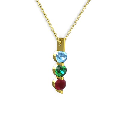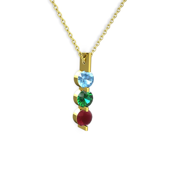 Akuamarin, yeşil kuvars ve kök yakut 925 ayar altın kaplama gümüş kolye (40 cm gümüş rolo zincir)