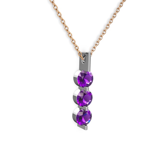 Ametist 14 ayar beyaz altın kolye (40 cm rose altın rolo zincir)