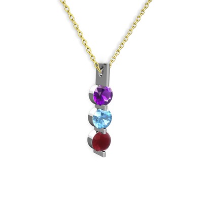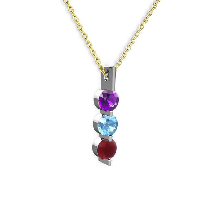 Ametist, akuamarin ve kök yakut 925 ayar gümüş kolye (40 cm altın rolo zincir)