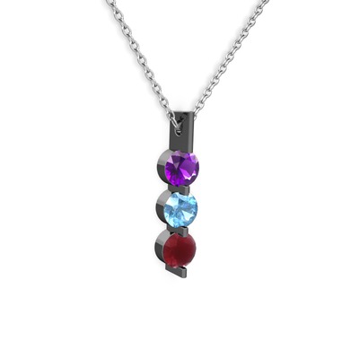 Ametist, akuamarin ve kök yakut 925 ayar siyah rodyum kaplama gümüş kolye (40 cm gümüş rolo zincir)