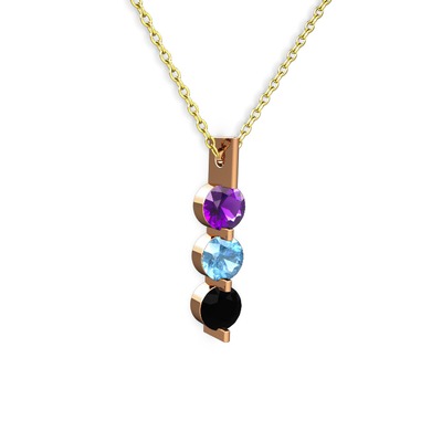Ametist, akuamarin ve siyah zirkon 925 ayar rose altın kaplama gümüş kolye (40 cm altın rolo zincir)