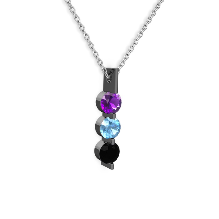 Ametist, akuamarin ve siyah zirkon 925 ayar siyah rodyum kaplama gümüş kolye (40 cm gümüş rolo zincir)