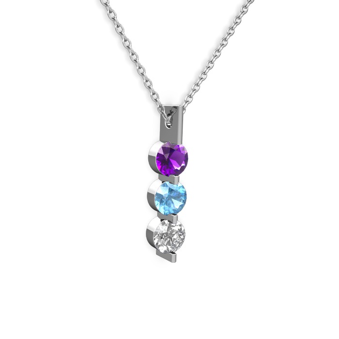 Ametist, akuamarin ve swarovski 8 ayar beyaz altın kolye (40 cm gümüş rolo zincir)