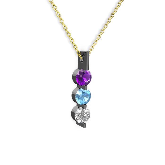 Ametist, akuamarin ve swarovski 925 ayar siyah rodyum kaplama gümüş kolye (40 cm altın rolo zincir)