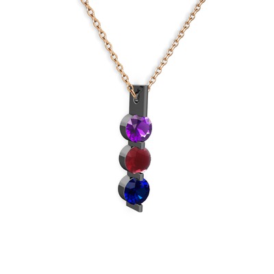 Ametist, kök yakut ve lab safir 925 ayar siyah rodyum kaplama gümüş kolye (40 cm rose altın rolo zincir)