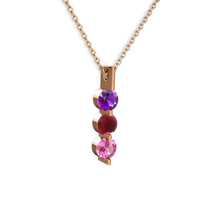 Ametist, kök yakut ve pembe kuvars 8 ayar rose altın kolye (40 cm gümüş rolo zincir)