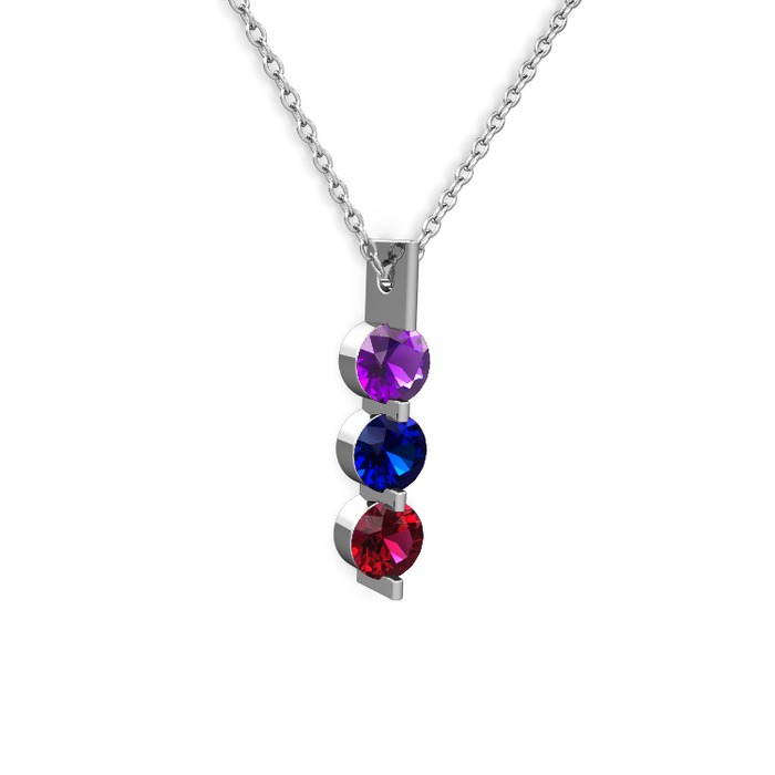 Ametist, lab safir ve rodolit garnet 8 ayar beyaz altın kolye (40 cm gümüş rolo zincir)