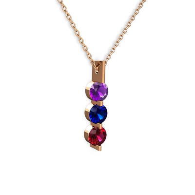 Ametist, lab safir ve rodolit garnet 925 ayar rose altın kaplama gümüş kolye (40 cm gümüş rolo zincir)