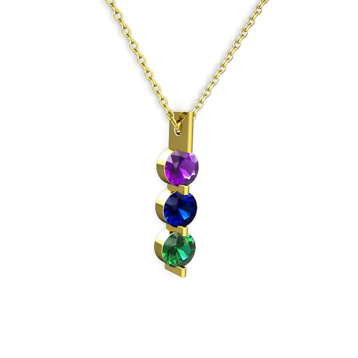 Ametist, lab safir ve yeşil kuvars 14 ayar altın kolye (40 cm altın rolo zincir)