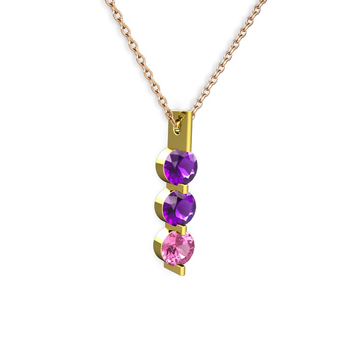 Ametist ve pembe kuvars 8 ayar altın kolye (40 cm rose altın rolo zincir)