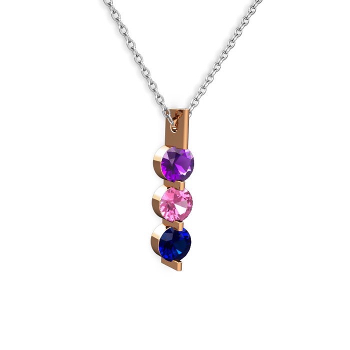 Ametist, pembe kuvars ve lab safir 925 ayar rose altın kaplama gümüş kolye (40 cm beyaz altın rolo zincir)