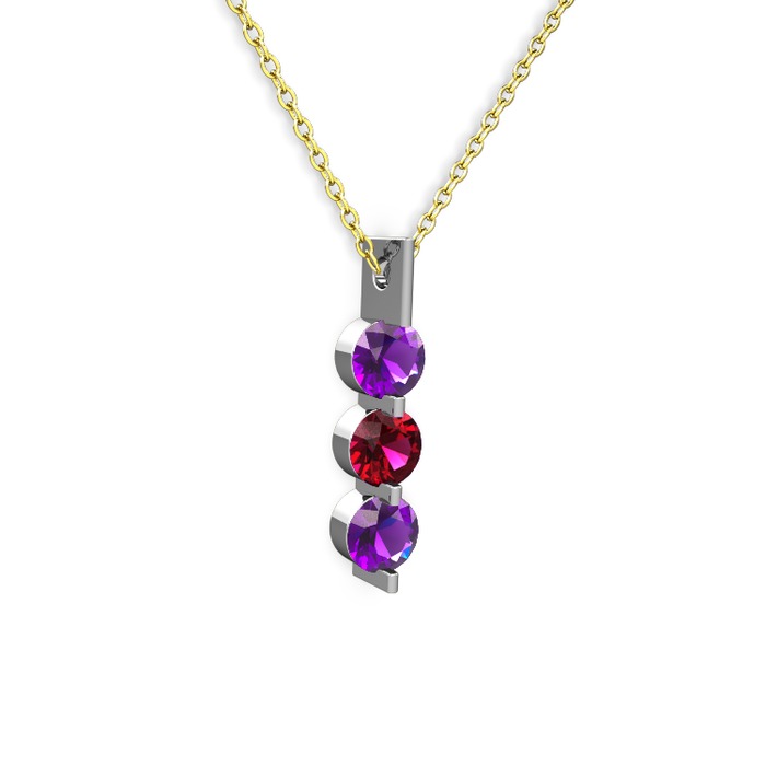 Ametist ve rodolit garnet 8 ayar beyaz altın kolye (40 cm gümüş rolo zincir)
