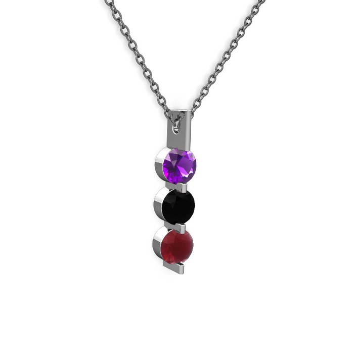 Ametist, siyah zirkon ve kök yakut 8 ayar beyaz altın kolye (40 cm gümüş rolo zincir)