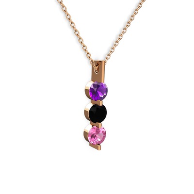 Ametist, siyah zirkon ve pembe kuvars 14 ayar rose altın kolye (40 cm rose altın rolo zincir)