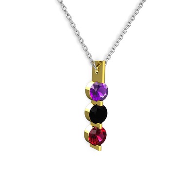 Ametist, siyah zirkon ve rodolit garnet 925 ayar altın kaplama gümüş kolye (40 cm beyaz altın rolo zincir)