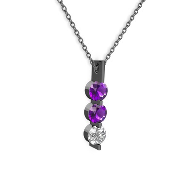 Ametist ve swarovski 925 ayar siyah rodyum kaplama gümüş kolye (40 cm gümüş rolo zincir)