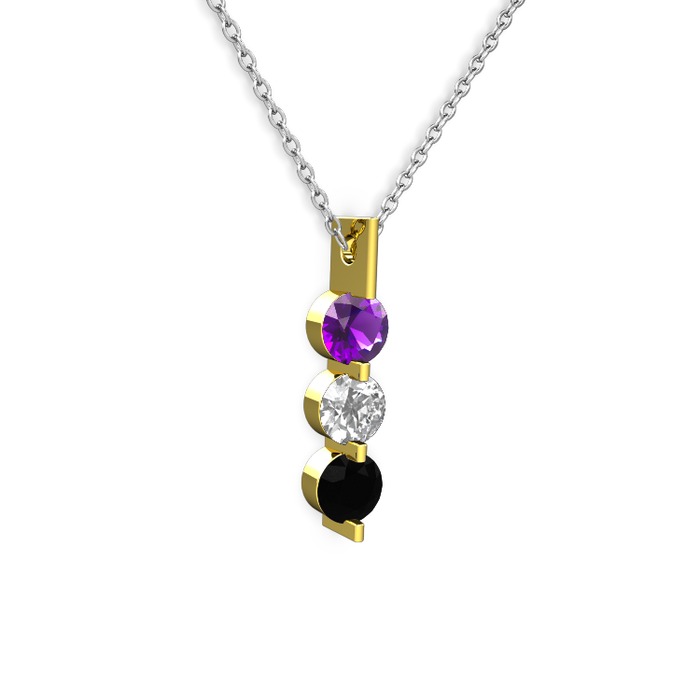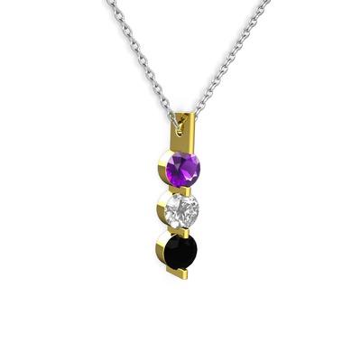 Ametist, swarovski ve siyah zirkon 14 ayar altın kolye (40 cm beyaz altın rolo zincir)