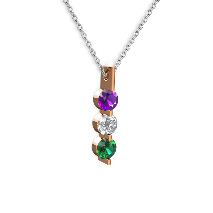 Ametist, swarovski ve yeşil kuvars 925 ayar rose altın kaplama gümüş kolye (40 cm gümüş rolo zincir)