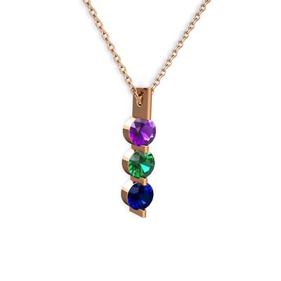 Ametist, yeşil kuvars ve lab safir 8 ayar rose altın kolye (40 cm gümüş rolo zincir)