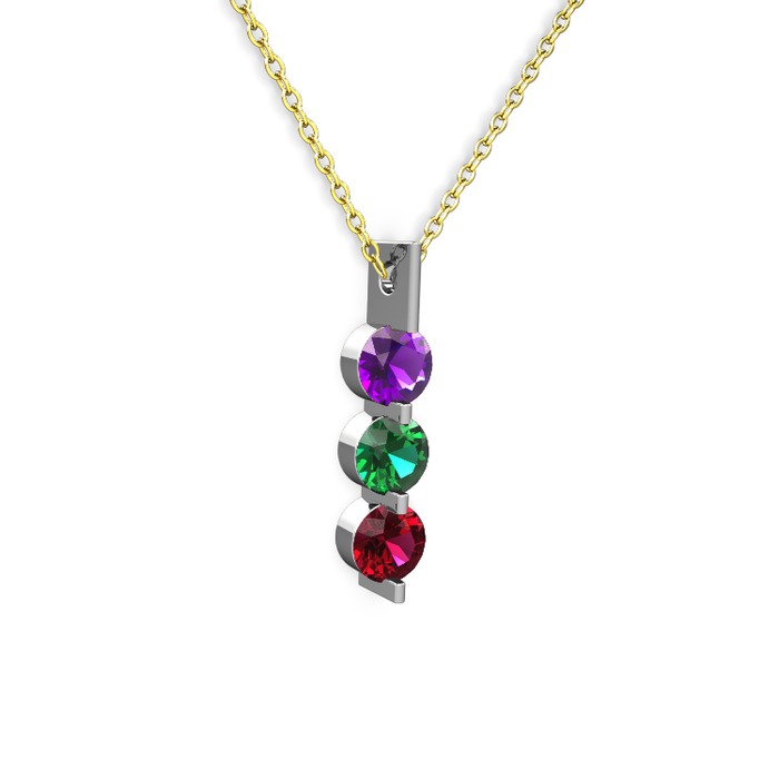Ametist, yeşil kuvars ve rodolit garnet 14 ayar beyaz altın kolye (40 cm altın rolo zincir)