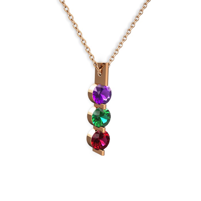 Ametist, yeşil kuvars ve rodolit garnet 8 ayar rose altın kolye (40 cm rose altın rolo zincir)