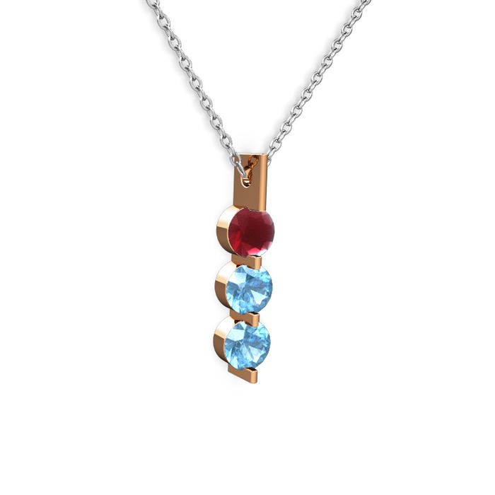 Kök yakut ve akuamarin 14 ayar rose altın kolye (40 cm gümüş rolo zincir)