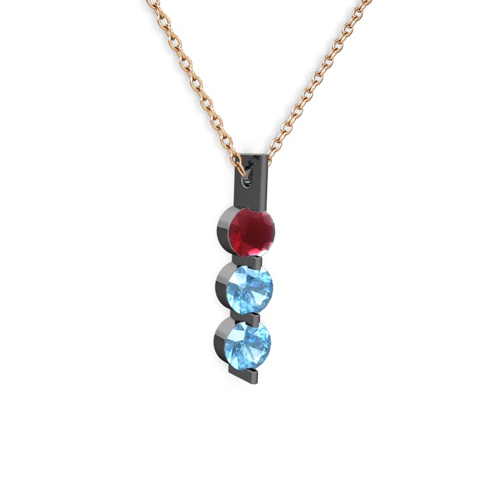 Kök yakut ve akuamarin 925 ayar siyah rodyum kaplama gümüş kolye (40 cm rose altın rolo zincir)