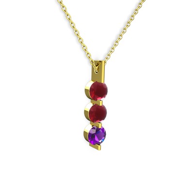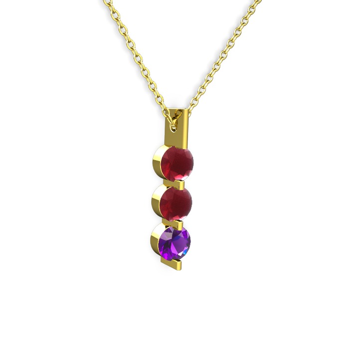 Kök yakut ve ametist 925 ayar altın kaplama gümüş kolye (40 cm altın rolo zincir)