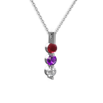 Kök yakut, ametist ve swarovski 8 ayar beyaz altın kolye (40 cm gümüş rolo zincir)