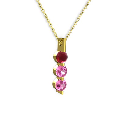 Kök yakut ve pembe kuvars 8 ayar altın kolye (40 cm altın rolo zincir)