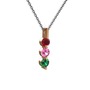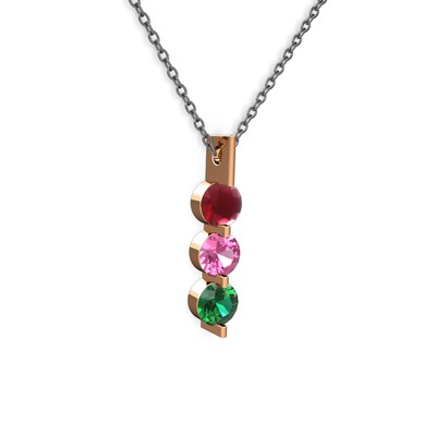 Kök yakut, pembe kuvars ve yeşil kuvars 925 ayar rose altın kaplama gümüş kolye (40 cm gümüş rolo zincir)