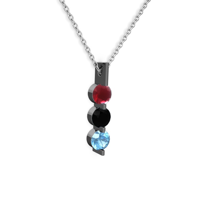 Kök yakut, siyah zirkon ve akuamarin 925 ayar siyah rodyum kaplama gümüş kolye (40 cm gümüş rolo zincir)