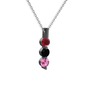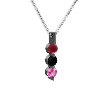Kök yakut, siyah zirkon ve pembe kuvars 925 ayar siyah rodyum kaplama gümüş kolye (40 cm beyaz altın rolo zincir)