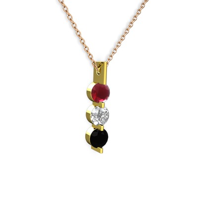 Kök yakut, swarovski ve siyah zirkon 925 ayar altın kaplama gümüş kolye (40 cm rose altın rolo zincir)