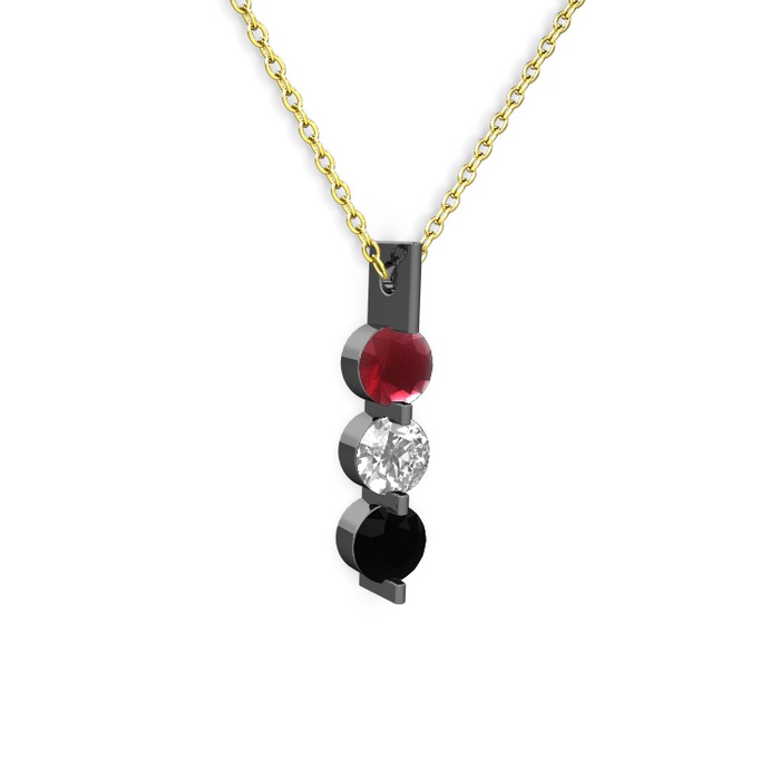 Kök yakut, swarovski ve siyah zirkon 925 ayar siyah rodyum kaplama gümüş kolye (40 cm gümüş rolo zincir)